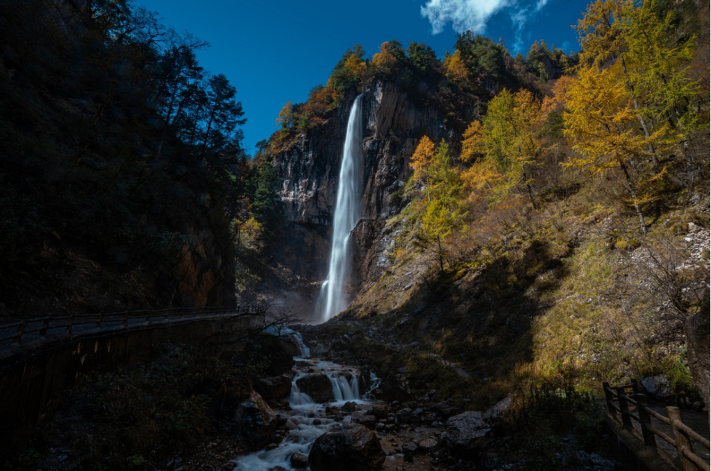 官鵝溝景區是西北罕見的 「水韻江南」,作為國家 5A 級景區,這裡將高山峽谷、飛瀑湖泊與羌藏風情完美交融,是年輕人解鎖西北小眾秘境的絕佳之選。