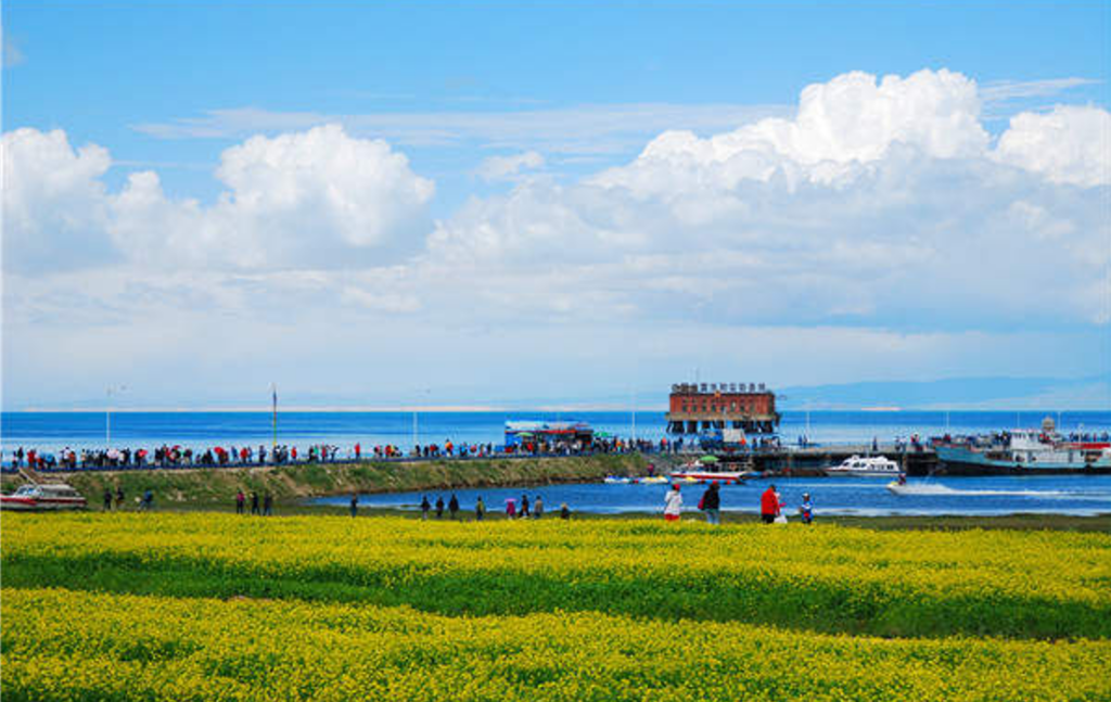 盛夏 7-8 月,青海湖迎來顏值巔峰,環湖千畝油菜花田與湛藍湖水交織,金黃與寶藍的碰撞堪稱視覺盛宴。