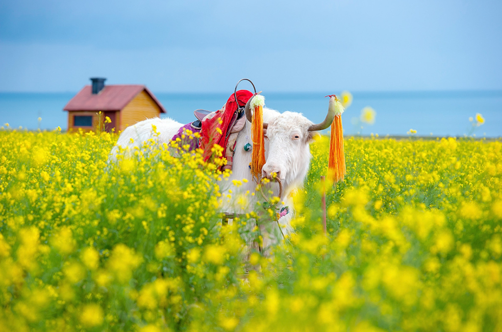 打卡環湖西路的原生態花海,避開人群,與犛牛群、經幡合影,解鎖最治癒的田園風。