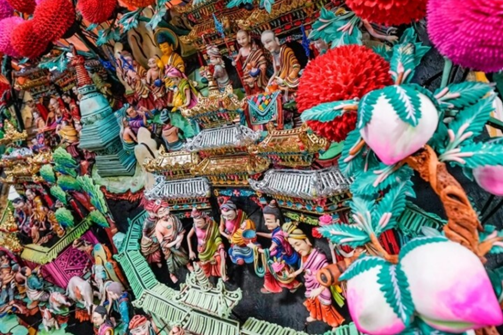 酥油花館裡,藝僧們在嚴寒中浸手冰水雕琢的酥油花,色彩絢麗、細節精巧,人物神態惟妙惟肖,每年正月十五的酥油花展更是一場不可複製的視覺盛宴。