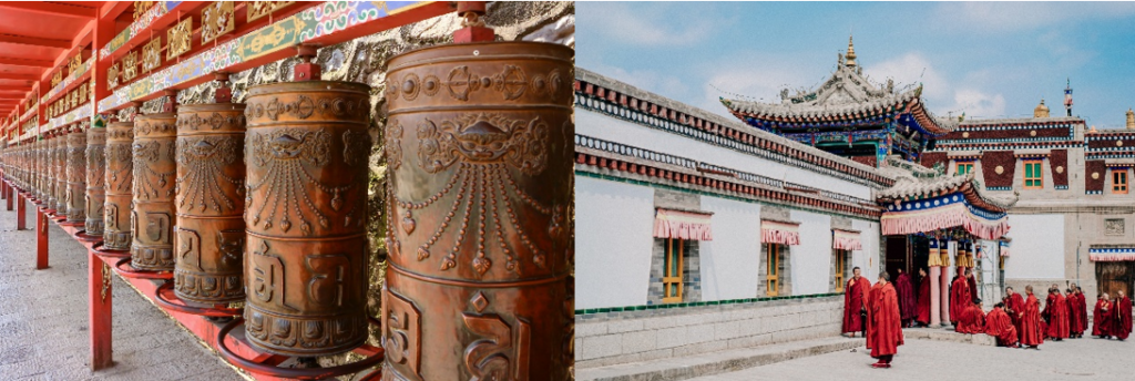 漫步寺內,轉經的信徒、古樸的廊道、隨風飄動的經幡,處處都散發著藏地獨有的寧靜與莊重。
