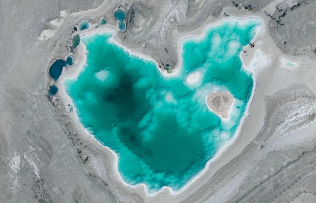 3號心形鹽池,以其天然形成的心形輪廓成為網紅打卡地,通過無人機航拍,可清晰捕捉這一自然奇觀,是情侶定格浪漫、遊客記錄美景的優選點位元。
