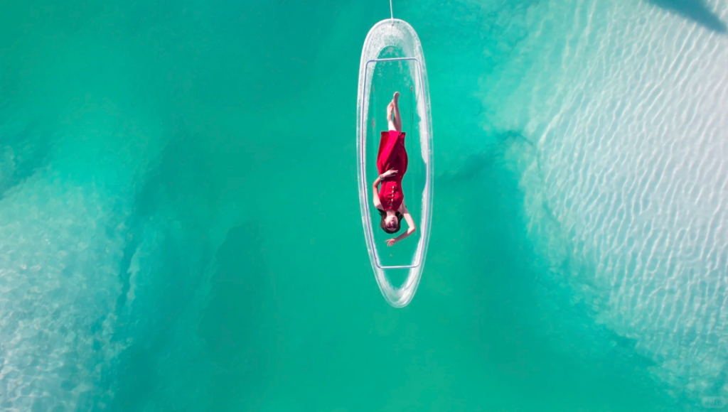 景區內還設有透明船體驗項目,乘坐透明船漂浮於湖面,可沉浸式感受“人在景中、景在畫中”的意境,呈現出懸浮于“寶石湖面”的獨特視覺效果。