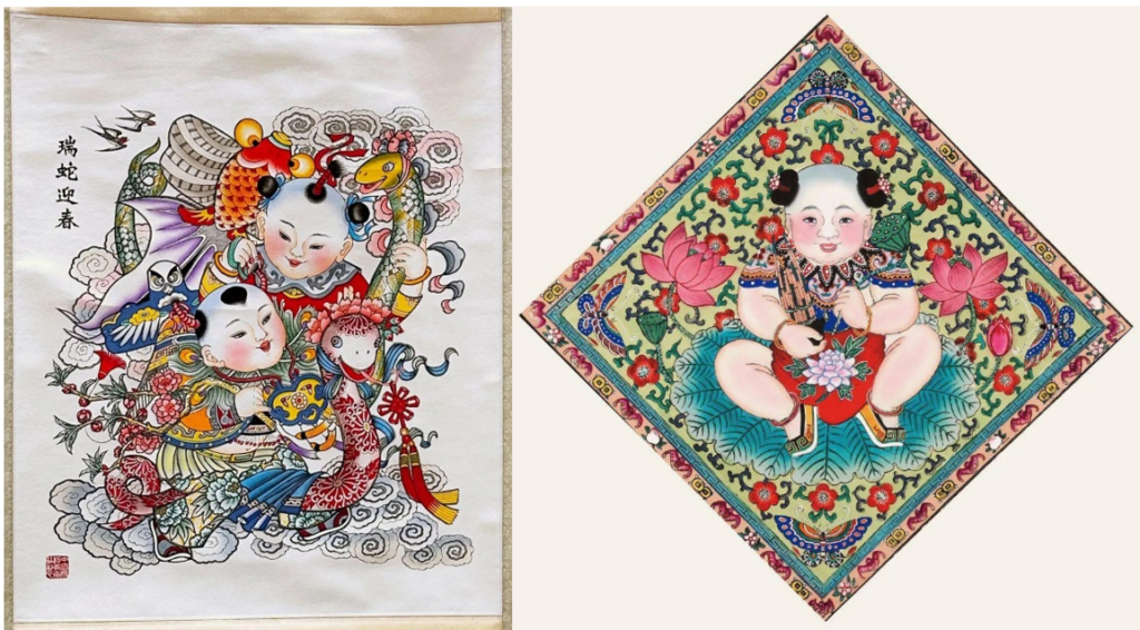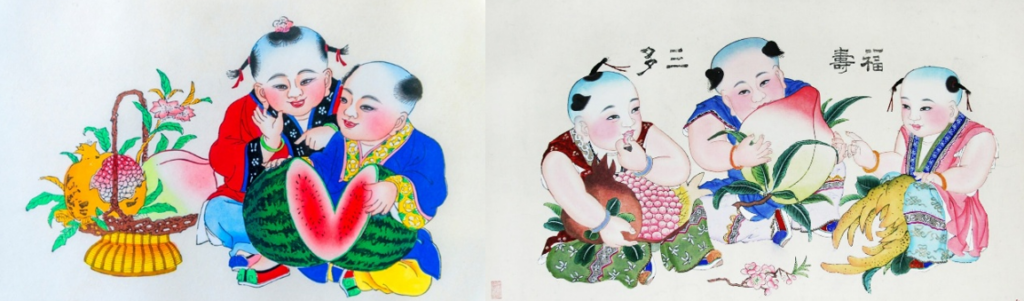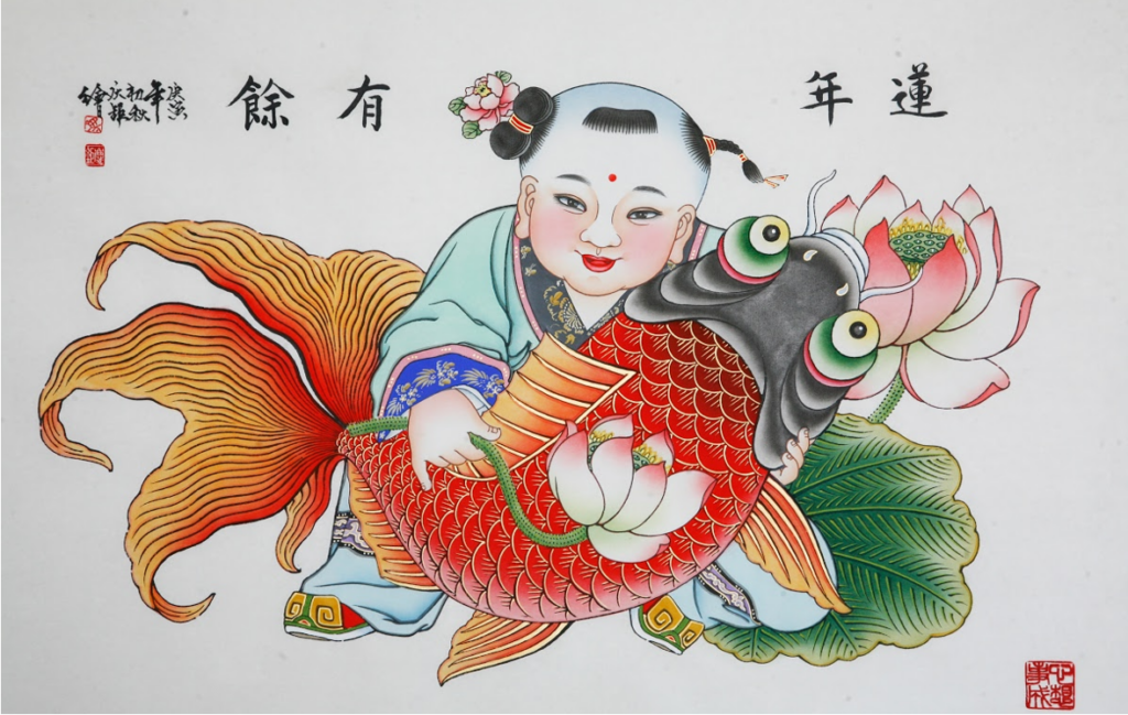 《蓮年有餘》中,懷抱鯉魚、手持蓮花的胖娃娃,寓意富足吉祥,成為流傳最廣的經典之作。