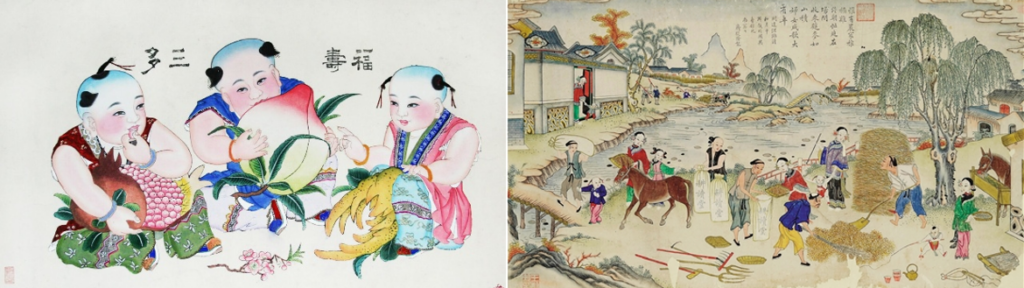 年畫題材包羅萬象,涵蓋風俗民情、歷史故事、戲曲人物、吉祥紋樣等。