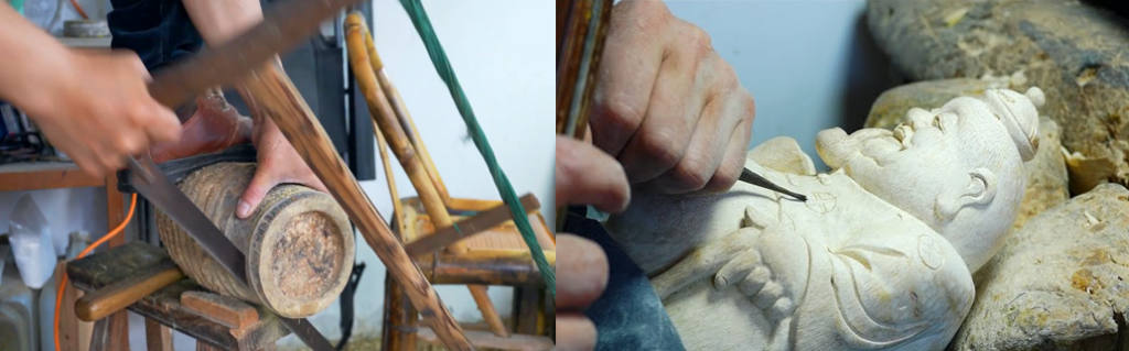匠人先觀石性、察石紋,確定形制與題材,再以浮雕、透雕、線刻、薄意雕等技法運刀,講究挺秀剛健、層次分明。