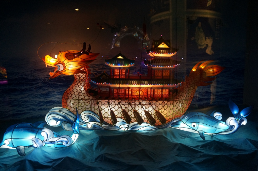 它造型豐富,小至精巧的掛件飾燈,大至氣勢恢宏的亭台、龍舟燈組,兼具雅致與大氣。