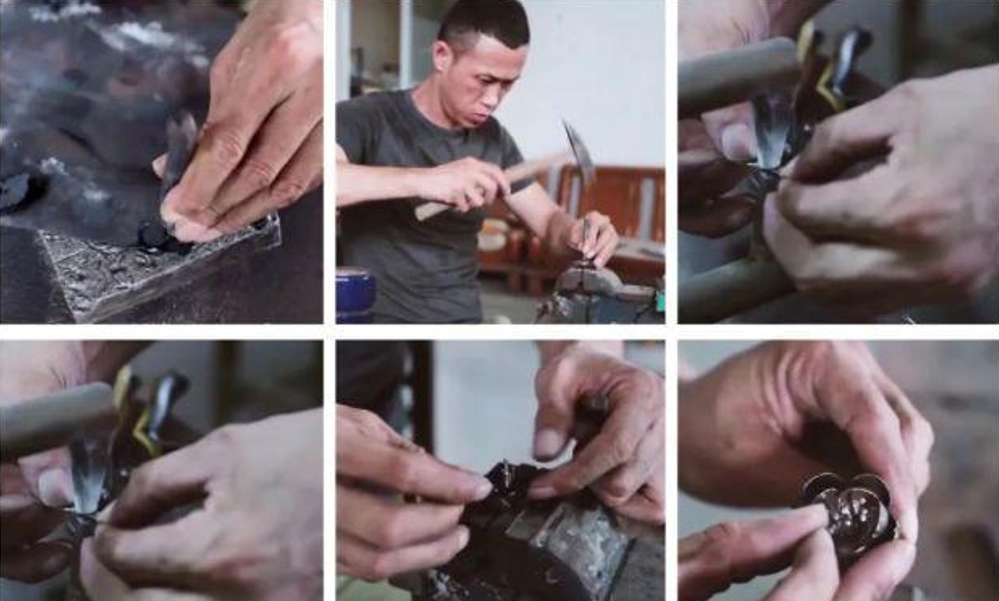 匠人先依國畫章法設計畫稿,再將鐵料入爐加熱,趁紅熱之際鍛打、彎折、塑形,隨後經鑽、壓、焊、銼、鑿等三十餘道工序,逐點逐線拼接成型。