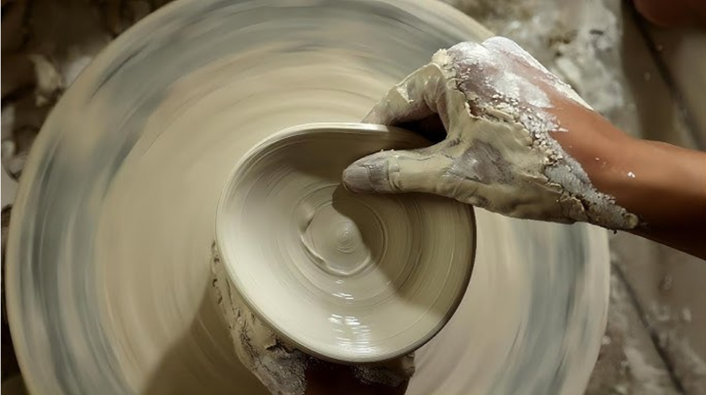 拉坯靠雙手在轉盤上塑形,圓器規整、琢器挺拔,全憑腕力與眼力。