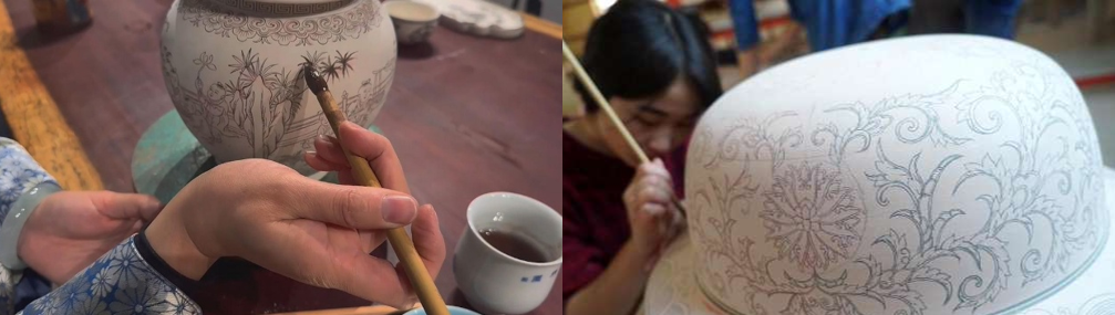 畫坯以青花、粉彩、玲瓏、顏色釉為代表,筆觸細膩,氣韻生動。