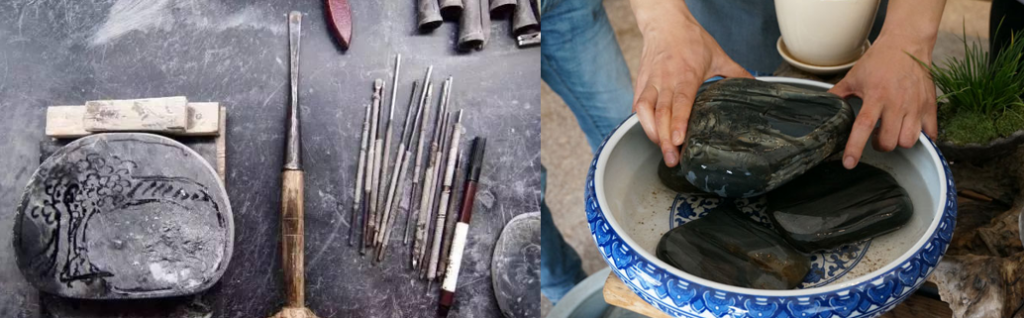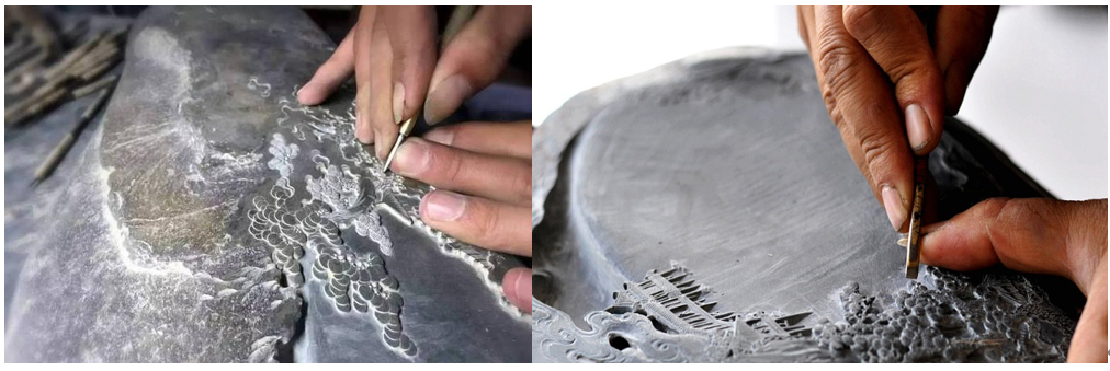 雕刻完成後,經多輪細磨與上光,方能達到 「澀不留筆,滑不拒墨,貯水不涸」 的理想效果。