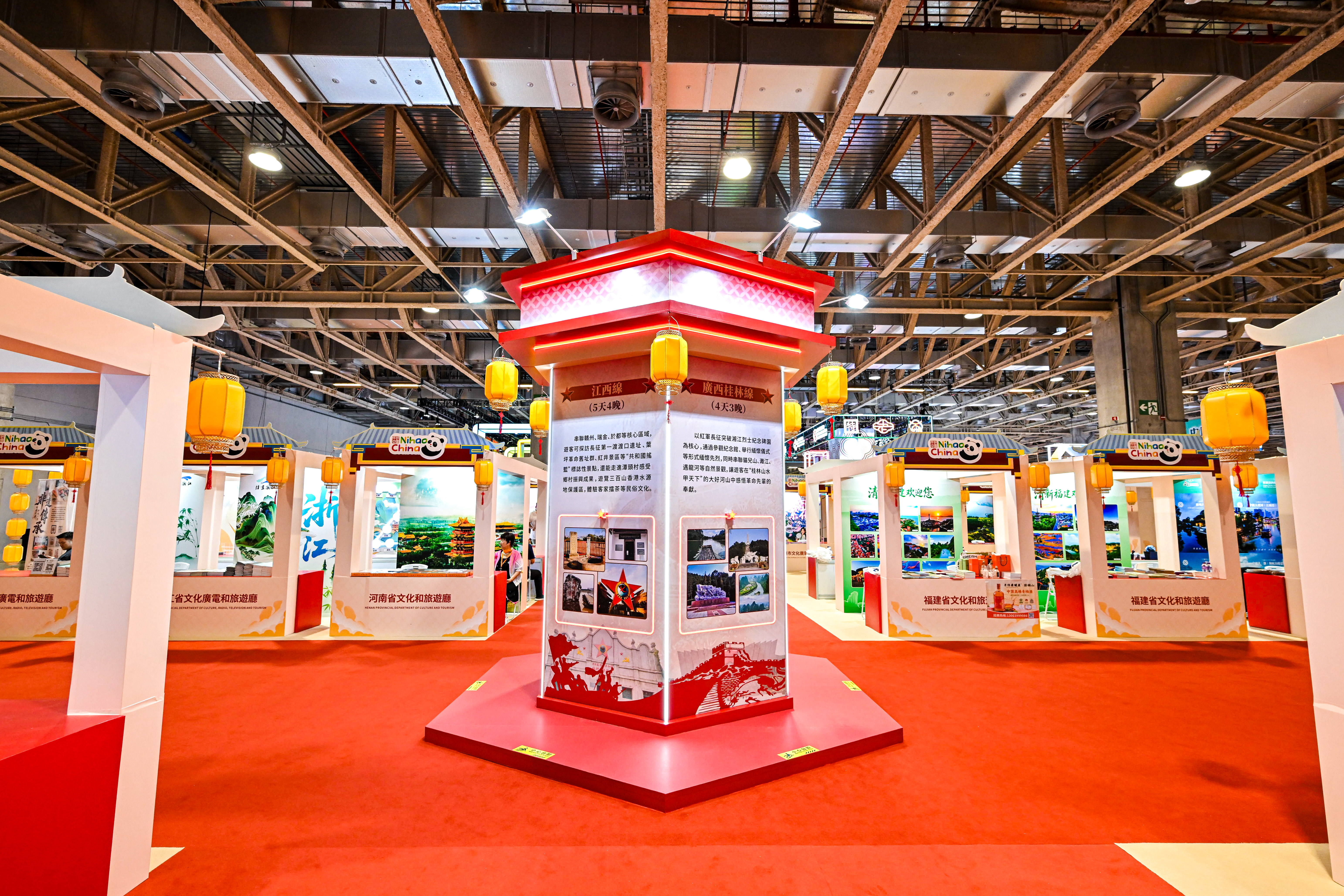 本屆展區升級科技賦能理念,豐富互動體驗形式,設置非遺文化現場演示區,邀請非遺傳承人現場展示傳統技藝,讓觀眾近距離感受中華非遺的匠心魅力;優化多語言服務配置,設立中英文入境政策宣傳展示專區,清晰呈現240小時過境免簽政策適用條件、口岸服務、外籍人士來華支付指南等便利舉措,同時配備12種語言版本文旅宣傳資料,全面覆蓋全球主要客源市場。此外,展區現場還展示了各參展省(區、市)的特色文創產品、旅遊紀念品,進一步豐富展陳內容,增強展區吸引力。